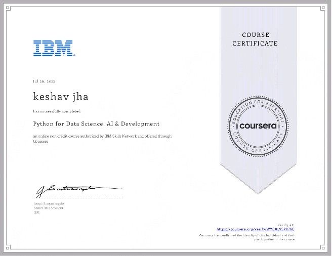 ✔️ Finally completed python for data science, AI and Development . #python #datascience #webdeveloper #programming ❣️😌 #coursera