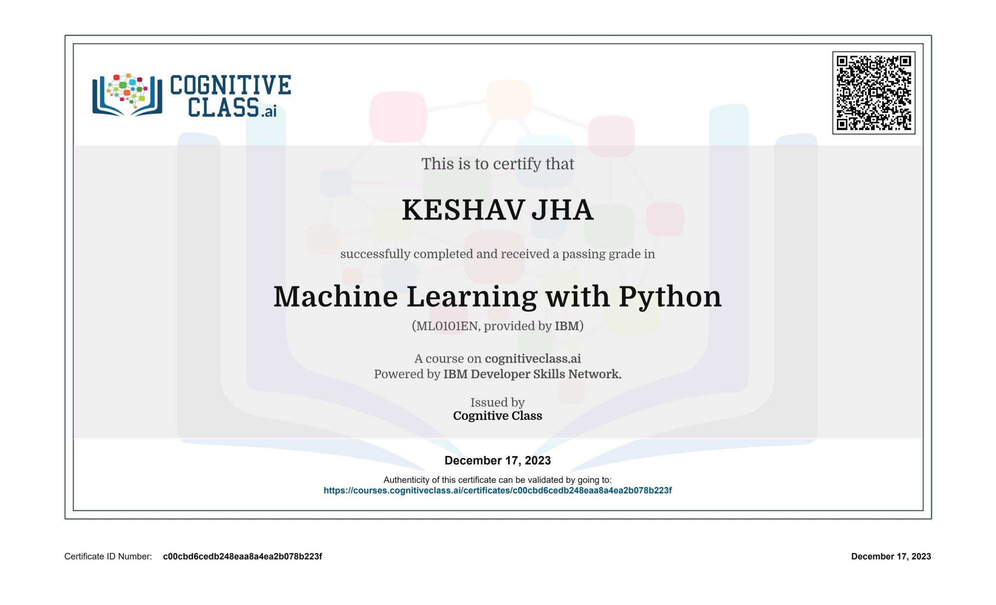 ➡️Hey Folks ! After months of intense learning and countless lines of code, I'm thrilled to announce that I've earned my certificate in Machine Learning with Python from Cognitive.ai. This incredible journey has been a rollercoaster of challenges, breakthroughs, and pure joy as I delved into the fascinating world of algorithms, data, and intelligent machines.